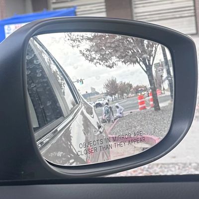 OBJECTS IN MIRROR ARE CLOSER THAN THEY APPEAR.